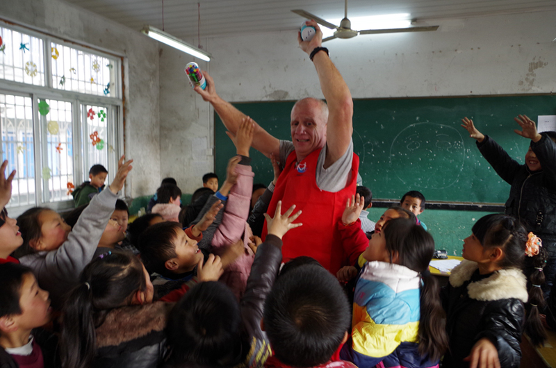 志愿者们的到来受到了学校师生的欢迎,在各个教室里和孩子们玩起了运球大作战、小李飞刀、筷夹弹子、贴猪鼻子等游戏,小朋友们每玩一个游戏就可以获得一枚印章,最后根据印章总数领取新年礼物。“心桥”国际青年义工队成员——外籍教师唐文博给孩子们上了一堂简短的英语口语课,他用丰富幽默的表情动作和简单的英语与孩子们亲切互动,向小朋友们表达了新年的祝福并希望他们健康成长。学校的老师也现场教孩子们说“Happy new year!”,并对此次热心的志愿服务表示感谢。