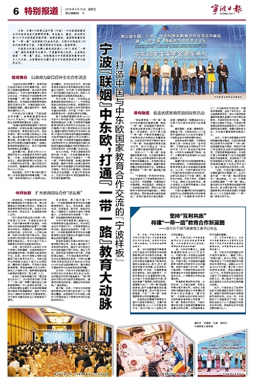 日前,为期4天的第五届中国(宁波)-中东欧国家教育合作交流活动在宁波顺利闭幕。来自波兰、捷克、保加利亚等16个中东欧国家和俄罗斯、哈萨克斯坦、泰国等特邀的其他“一带一路”沿线国家250余名代表,与国内外院校近100名代表相聚在宁波,为教育国际合作架起一座座桥梁。