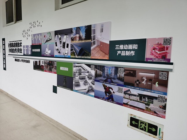 学院收集了计算机应用技术(中澳合作)、艺术设计(中澳合作)等专业学生作品,在十号楼走廊分别做了设计作品展、3D建模作品展,为学生提供了一个展示专业技能学习成果的平台,鼓励他们敢于展示、勇于表现,在获得的认可和赞美中快速成长。来自18计算机中澳A2班的邵智昕同学看到自己设计的多幅作品被展出,开心激动地表示,自己的努力总算没有白费,感谢学校,感谢老师的辛苦栽培,要继续努力向前冲。此举不仅能帮助学生树立学好专业技能的自信心,同时让低年级学生坚定自己的学习态度,从而对学习更有热情,促进专业技能提升。