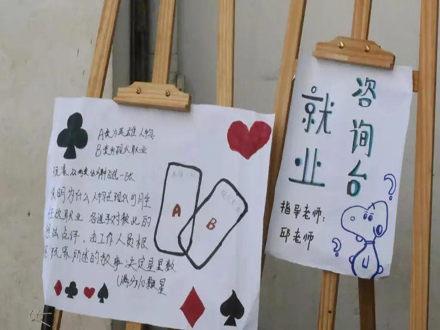 活动特邀请校招生就业处邱宝荣老师担任现场指导老师。邱老师认真负责地对每一位前来咨询的同学进行答疑,解答学生在职业生涯认知当中存在的种种疑惑。活动设立了一个大本营,一个奖品发放区与四个游戏点,分别为“你画我猜”、“现代纸牌”、“指挥官”和“轨道运球”。