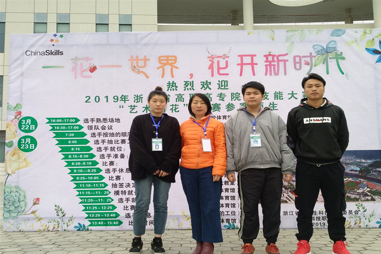 3月22日至23日,2019年浙江省高职高专院校技能大赛“艺术插花”竞赛暨全国职业院校技能大赛选拔赛在台州科技职业学院举行。景观生态环境学院邱迎君教授带领2名学生参加了比赛。其中,吴宙谕同学以总分第一的成绩荣获一等奖,并将代表浙江省参加国赛。朱锦哲同学获得三等奖。