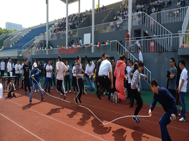 本次运动会比赛项目包括集体跳长绳、飞镖、智转呼啦圈、动感颠球、师生拔河,均以团体赛的方式进行。全体教职工按专业组成参赛团队。昔日在课堂上认真听课的学生摇身一变成为比赛裁判,认真严肃地履行裁判职责。天天在讲台前高谈阔论的教师们则规规矩矩听从裁判组织。比赛高潮迭起,精彩纷呈。参赛运动员的每个精彩表现都会引起场外的阵阵欢呼。各个项目不单是智慧和体力的角逐,更是团结和协作的完美比拼。