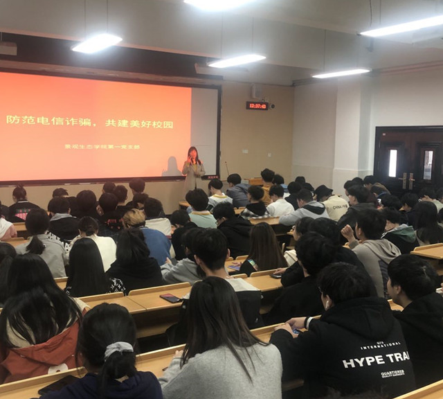 此次讲座由支部书记何月秋主持。何老师传达了电视电话会议上习近平总书记强调坚持以人民为中心 ,全面实打防管控措施,坚决遏制电信网络诈骗犯罪多发高发态势的重要指示。并通报了近期发生在我校的电信诈骗案件,让学生感受到电信诈骗离我们并不遥远。何老师还播放了防范电信诈骗相关视频,让学生了解常见的电信诈骗套路、真实的电信诈骗录音以及如何防范电信诈骗方法,让他们能够在今后的生活中甄别电信诈骗。讲座最后,参会的师生一起进行交流,分享如何避免上当受骗的经验。