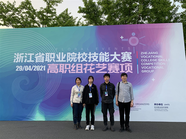 2021年浙江省职业院校技能大赛“高职组花艺赛项”于2021年4月29日在杭州职业技术学院举行。景观生态学院2名园艺技术专业学生在指导教师邱迎君博士的指导下分别获得一等奖和二等奖。
