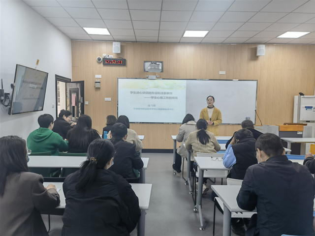 为进一步提高班主任业务能力,扎实推进学院心理辅导工作,提升师生谈心谈话技巧,是心理辅导工作的重要内容。323日,景观生态学院景心坊心理辅导室邀请校心理健康中心骆飞霞老师为班主任老师作主题为“如何与学生谈心谈话”的培训讲座,全体班主任、学工办辅导员参加。