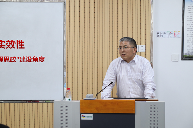 会上,杜老师从“为什么”“做什么”“所处阶段”“信心何在”“难点和困惑”“如何突破”六个维度阐述了如何提高课程思政的建设实效性,详细介绍了学校“七有”目标和“五位一体”课程思政实践成果,提出了对“高水平建”“精准评”“出特色成果”等方面难题的破解对策,进一步从政策视角明确了课程思政的建设目标和育人重点以及将价值塑造、知识传授和能力培养融为一体,充分发挥课程思政的育人成效的重要性。研讨阶段,学院教师逐一汇报分享课程思政示范课程的建设思路,共研共议共评,为优化课程思政整体设计出谋划策,为提高育人实效尽心思考。