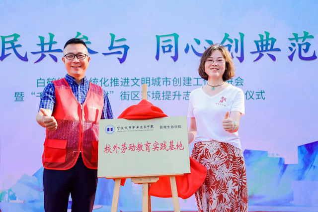 为进一步推进校地合作服务质量,助推学院育人高质量发展,培养高素质、有特长的景观卓越人才。7月6日上午,景观生态学院在白鹤街道举行校外劳动教育实践基地揭牌仪式。白鹤街道党工委委员黄志利、景观生态学院党总支副书记张军侠共同为基地揭牌。