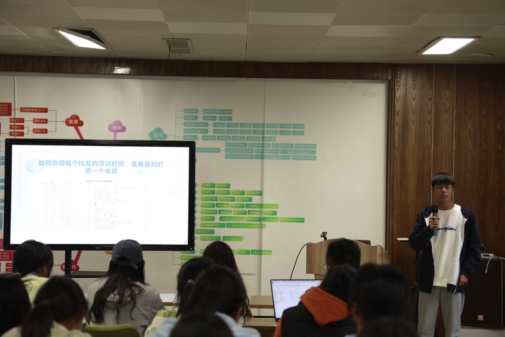 分享会上,三位参与寻访的代表同学根据寻访中存在的问题、收获的经验和寻访期间的美好瞬间,分享了各自的心得体会。同学们纷纷提问互动,现场气氛热烈,为进一步开展校友寻访活动打下了坚实的基础。