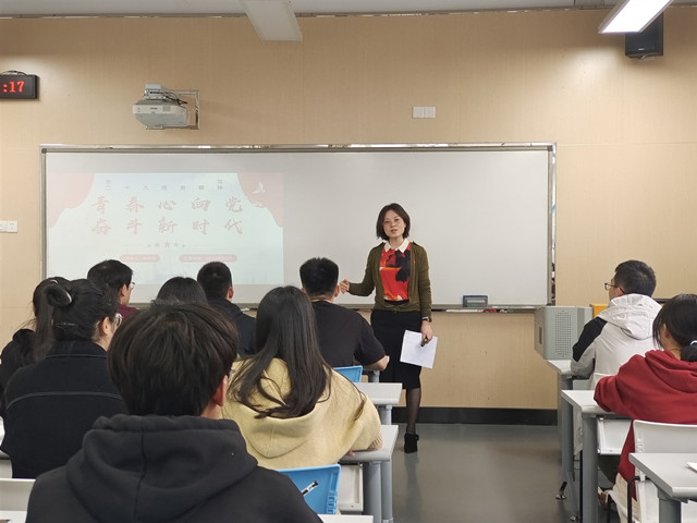 张老师分享了自己学习二十大的报告的体会,从感党恩、担责任、肯奋斗、争荣誉四个方面展开,以身边故事和自己的经历为例,讲述中国从站起来到富起来、强起来的故事,告诫同学们要常怀感恩之心,认识到青年是国家的未来,民族的希望,要勇于承担起社会责任,牢记习近平总书记对青年的嘱托,牢记父母对儿女的嘱托、牢记学校对学生期望,发挥好积极分子的示范引领作用,在防疫、社区管理和职业素养方面争做标杆,争做有理想、敢担当、能吃苦、肯奋斗的新时代青年,为实现第二个百年奋斗目标创新奋斗,把自己的发展同祖国的发展荣为一体,努力成长为高素质、有特长的闪亮景星。