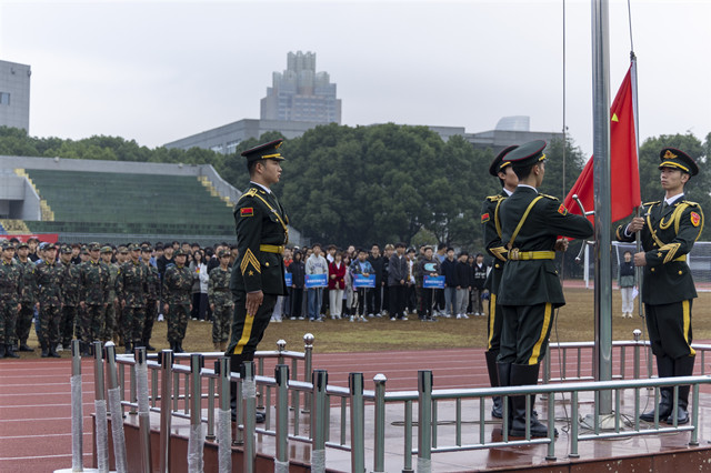 迎着朝阳,校国旗队的旗手们以饱满的热情,庄严地护卫五星红旗。当雄壮激昂的《义勇军进行曲》响彻田径场时,全体集团员工和退伍军人集体行注目礼,鲜艳的五星红旗冉冉升起,点燃了员工们强烈的爱国热情。