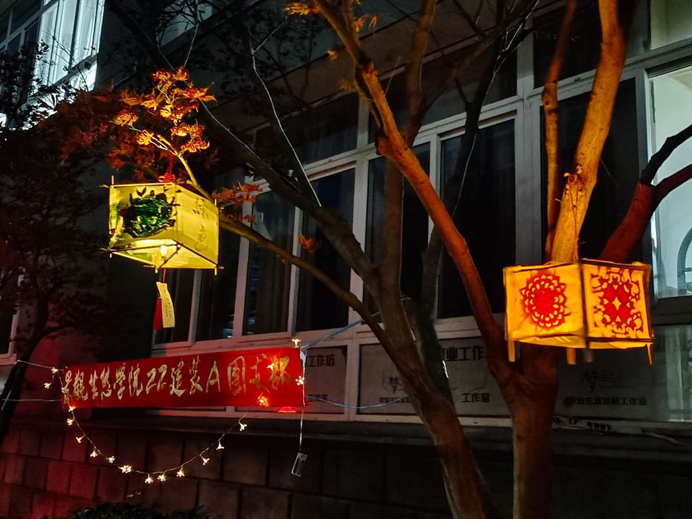 该团支部通过理论学习感悟党的二十大精神内涵,组织团员青年集中收看二十大重点精神讲解视频,以图文并茂的宣讲方式促进支部成员对党的二十大精神的学习和理解。并在深入学习的基础上,以灯笼制作的方式将自己对二十大的理解以颜色、文字、线条等方式展现在各个灯笼的面上。将对联、灯笼挂于校园内的红枫下,引来路过师生驻足观赏,在浓浓的国风里共同学习感受党的二十大精神。
