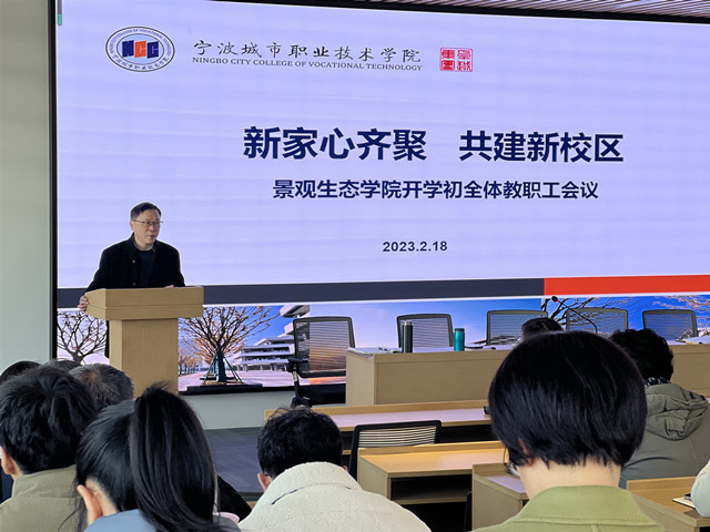 春归万物生,卯兔踏新程。218日上午,景观生态学院召开新校区新学期全体教职工大会,会议以“新家心齐聚  共建新校区”为主题,围绕双高专业群验收、新校区建设等系列重点工作,对2023年工作进行全面动员和部署。校党委书记周国明、副院长王志龙等一行看望景观学院全体教职工并参加会议。