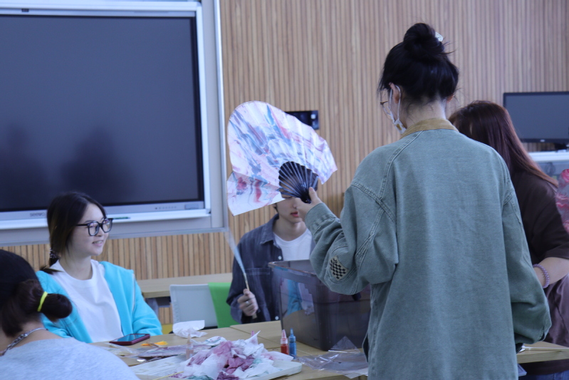“我要勇敢做自己,不被外界定义。”“春天新定义”撕掉标签活动现场气氛热烈。同学们撕下标签,分享自己追求自我成长的经历,深入探讨外界标签对个人身份认同的影响。在“遇见春天”线上摄影展中,同学们将自己捕捉到的美好瞬间上传,分享、交流眼中的美丽春日,传递对生活的热爱与对未来的憧憬。他们还在“定格春天颜色”漆扇制作活动中发挥创意和想象,将春天的色彩和元素融入扇面设计中,让每一把漆扇都充满了春天的气息和活力。