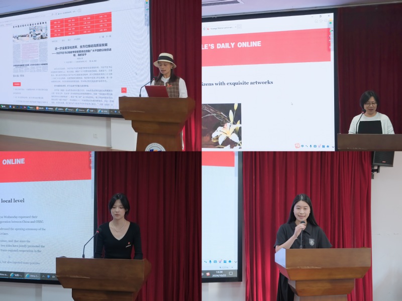 活动中,教师党员叶昊、潘惠红、俞钦钦和晏妮、沈琪两位老师担任党报领读员。他们以党的二十届三中全会精神为主题,精选了《人民日报》中的“让阅读为青春增色”、“进一步全面深化改革,全方面推动高质量发展”和“‘零距离’向青年传递党的二十届三中全会精神”等文章进行深情朗读,并分享了各自的读报体会。随后,在领读员们的引导下,15名锦绣读书协会、英语社的学生和3名联合党总支“三联系”学生用中、英文声情并茂地朗读了涵盖深化改革、廉洁建设、经济发展等多个方面的党报文章。有的学生满怀真情地朗读了党报中的感人故事,有的则畅谈党报给予自己的思想启迪与人生指引。活动现场洋溢着积极向上的正能量氛围。活动最后,联合党总支组织全体成员一起观看了“主编带你读党报”视频,进一步加深了大家对党报精神的理解。