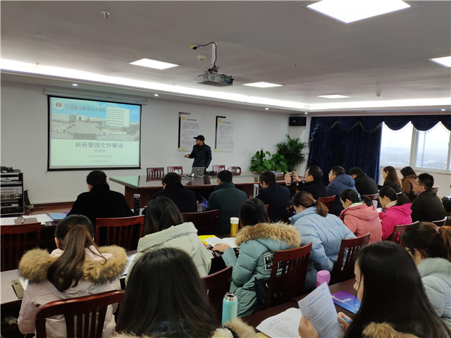 钱斌华从科研项目的分类及申报程序、科研工作量的计算办法解读以及如何合理合规使用各类科研经费三个方面作了详细的阐述与辅导,并鼓励教师们踊跃申报各级各类科研项目,发表高质量论文。讲座期间钱斌华与老师们进行了互动,并对老师们提出的科研与地方服务方面的问题进行了解答。