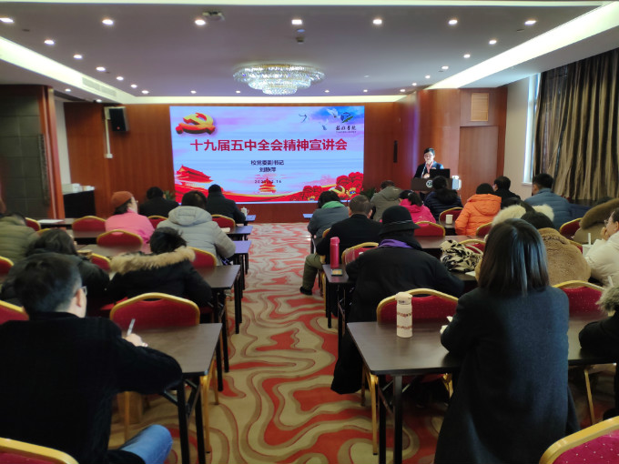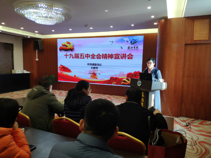 为学习贯彻党的十九届五中全会精神,领会十九届五中全会的精神实质和丰富内涵。 12月16日,校党委副书记刘静萍为旅游学院全体教工作了一次党的十九届五中全会精神宣讲报告,会议由学院党总支书记朱建国主持,全体教职员工参加。