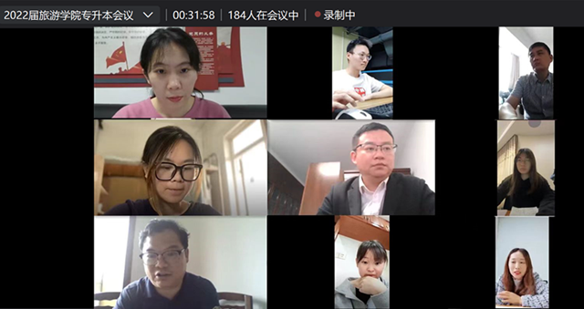 4月13日下午,旅游学院召开2022届专升本主题线上会议,2022届全体专升本考生,学院相关领导、辅导员、班主任等近200人参加会议。会议传达了学院在专升本工作中的新举措:“云学习”系列活动。旅游学院党总支书记朱建国、副书记傅远柏,辅导员邵天娇老师分别寄语专升本考生,并对“云学习”系列活动的学生参与、教师督学等方面提出了明确要求。