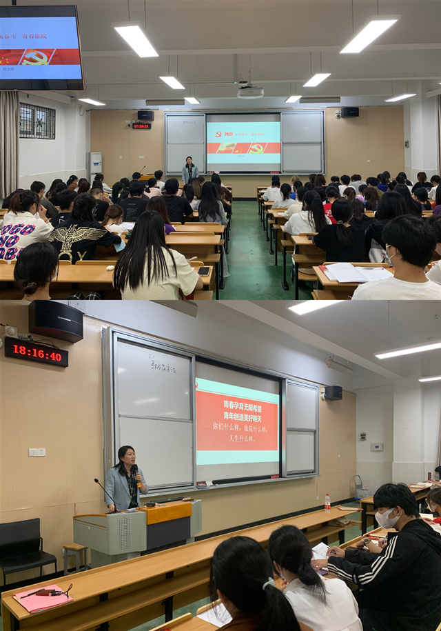 党课上,舒卫英老师以电视剧《觉醒年代》“南陈北李相约建党”的动人故事为引,从坚定理想信念、设立人生目标、理论与实践相结合等方面,结合邓稼先、袁隆平、樊锦诗等人物事迹,向同学们强调“脚下之路,靠青春开创”,新时代青年要勇于肩负使命与担当。