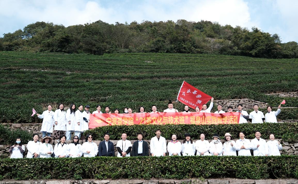 此次实践教学由福泉山徐副场长带领同学们详细了解了福泉山茶园的茶叶品种、育种种植及茶园管理情况以及茶叶的加工销售等现状。宁波福泉山茶场总面积10.5平方公里,合15750亩。现拥有茶园面积3600亩,其中560亩茶树良种繁育实验基地,无性系良种茶园是宁波市占地面积最大、茶树品种最多的茶场,宁波市农业龙头企业。面积1800亩,保存有迎霜、毛蟹、福鼎、菊花春、劲峰、翠峰等优良茶树品种100余个。