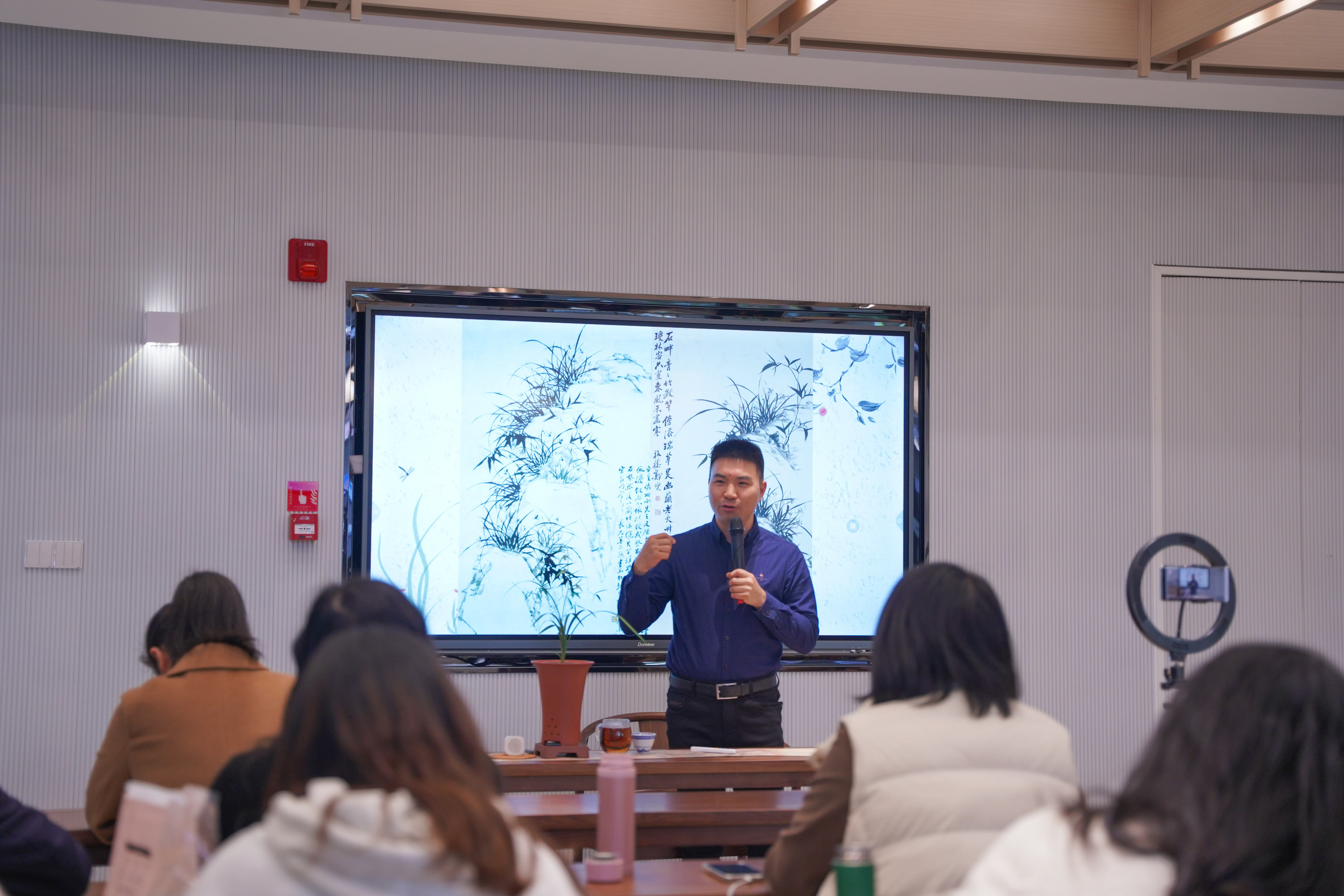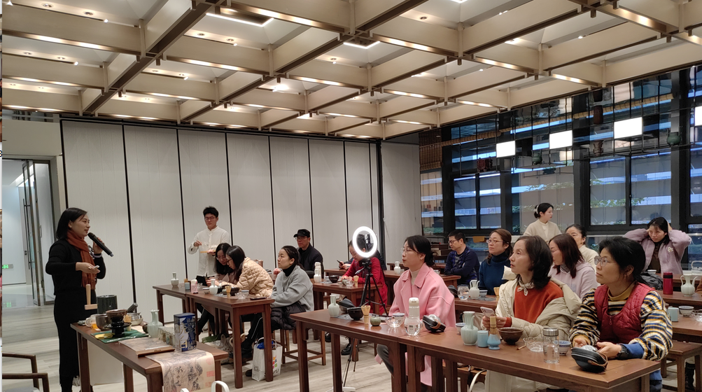 这是自2019年以来旅游学院面向全市中小学教师举办的第8期茶文化主题培训,培训班特邀宁波茶学院导师林宇晧,浙江省非物质文化遗产专家委员会会专家、浙江师范大学宣炳善副教授,浙江省技能大师工作室领办人、浙江省非物质文化遗产越窑青瓷烧制技艺传承人孙威,元满堂茶业主理人张圆圆,宁波市兰花协会张会锋等多位校外专家与校内教师联合授课。课程内容较上一期更为丰富、深入,从中国茶道的儒道互补到白茶、乌龙茶与黑茶的品鉴与收藏;从茶器美学到青瓷茶具的制作……既有中国茶文化的厚度,又有艺术鉴赏的高度,还有大量茶艺与品茶技能实操的“实用度”。