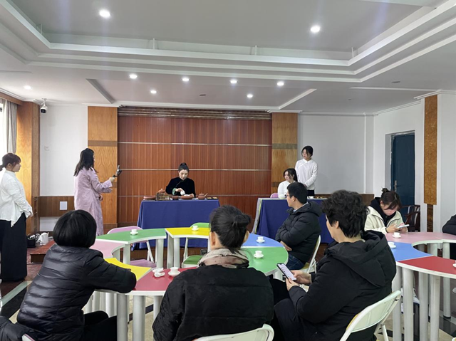 近年来,在疫情和“双减”的双重压力下,许多教师进入了超负荷教育的节奏中,教育“内卷”现象持续升温,宁波体育运动学校为丰富教师们的文化生活,提升教师们的文化品味,缓解情绪与压力,同时也为了给老师们营造良好的工作氛围,体现学校的人文关怀,特邀请我院沈蓓芬技能大师工作室策划与组织此次茶文化主题会活动。