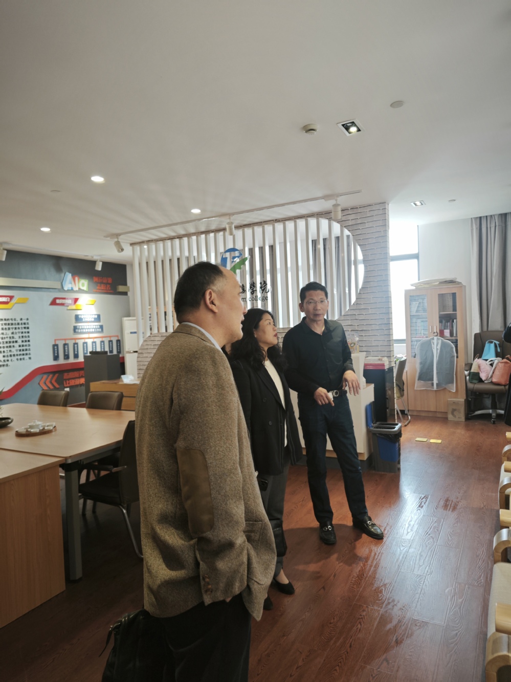 双方在实训楼大堂吧交流座谈专业建设