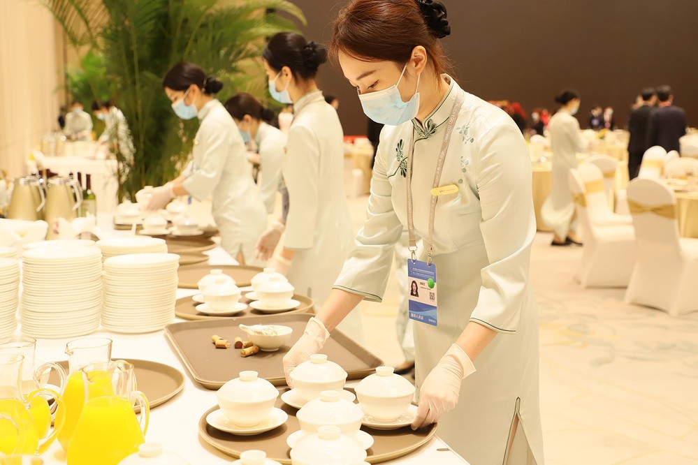 “您好,会务用餐里边请。”“这是您要的咖啡,请慢用。”受宁波国际会议中心望岚酒店邀请,学校13位酒店管理专业志愿者于5月9日进驻宁波国际会议中心及望岚酒店,为中东欧国家博览会的会务和宴会提供服务。
