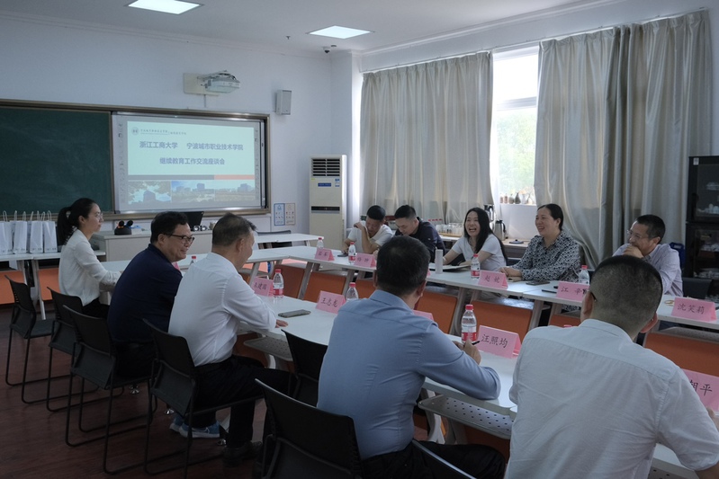 继续教育学院朱建国院长就学院规章制度建设、学历教育、社会培训等内容做了现场介绍。赵妉围绕浙江工商大学办学特色、学历继续教育和非学历教育的发展定位、运行机制及办学优势等方面,和与会人员做了深入交流。