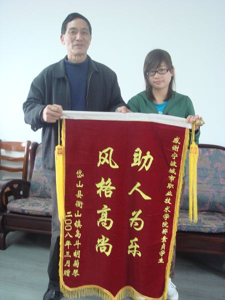 郑素贞是07旅专酒店2班的学生,上学期,她帮助了一位因意外而受伤的中年妇女。事情发生在公交车上,当时司机突然启动公车,一位中年妇女因站立不稳而摔倒,伤势严重。车上的其它乘客只是冷漠的观望,而郑素贞同学迅速上前扶起受伤的妇女,并将她送往了鄞州第二医院。直到联系到受伤妇女的家人后,她才匆匆离开,赶回学校。此后,郑素贞对此事只字未提,直到今天,事情才真相大白,同学们对她的做法啧啧称赞。