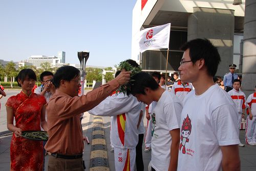 下午15:40,中外青年奥运火炬传递到我院,全院师生欢欣鼓舞,激情澎湃的参与了迎接火炬的仪式。来自鄞州电大的火炬手将火炬交到我院方伟学同学手中。学院党委副书记周国明亲临现场,向火炬传递的使者送上鲜花,并为我院的火炬接力手带上了橄榄枝。
