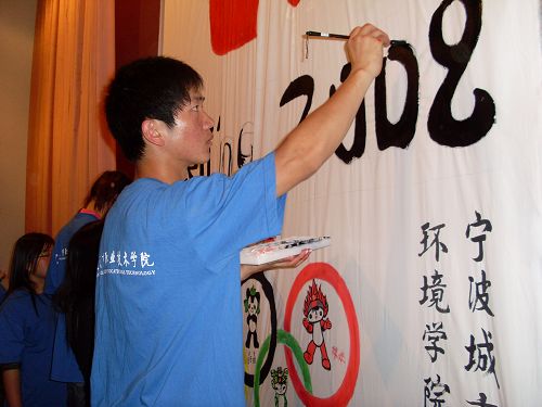 该院第三届科技文化技能节之社团文化暨奥运主题展示在环境学院大礼堂举行。环境学院院办、学工办各位老师参加了此次活动。整台展示活动以奥运知识竞答为主体,共分为必答、抢答、终极PK等三个环节,五个参赛队分别被命名为贝贝、晶晶、欢欢、迎迎、妮妮。经过激烈的角逐,以文学社为代表的贝贝队脱颖而出,获得最终胜利。比赛过程中,来自书法社的同学忙碌着一幅长4米、宽2米的奥运主题展示“大作”,师生们纷纷在巨幅奥运画上按下手印,体现了对北京奥运的热切期待。各社团为晚会带来的特色鲜明的演出活跃了场内气氛,展示了社团风采,将整场活动推向了高潮。