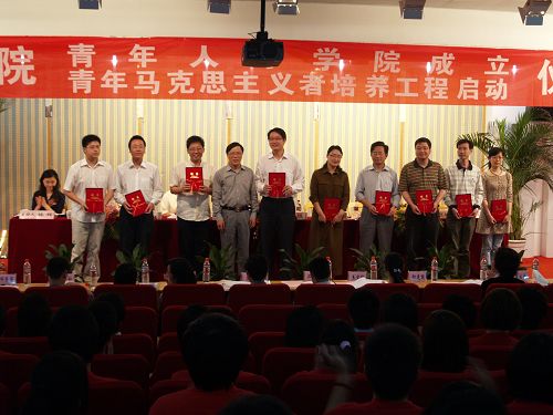 校团委书记林辉在会上详细介绍了青年人才学院成立和青年马克思主义者培养工程的情况。她指出,青年马克思主义者培养工程的实施,旨在引导当代大学生坚定永远跟党走中国特色社会主义道路的信念,着力提升大学生骨干的信念、品格、视野和能力,培养并造就一批用马克思主义中国化最新成果武装的青年马克思主义者。青年马克思主义者培养工程的对象都是品学兼优的校院两级学生团干、学生会干部、学生社团骨干,以及在学术、科技、文化等方面优秀的同学,他们将主要接受理论培训、实践锻炼、校园活动创办、对外交流、素质拓展、军事历练等六个环节的课程训练,由学院相关领域的专家们组成的业务导师团将指导他们的学习和成长。同时,将开发建立人才库,为优秀学生骨干建档立册,在社会实践支教团、访台交流以及就业推荐等予以优先,并实施跟踪培养。