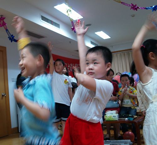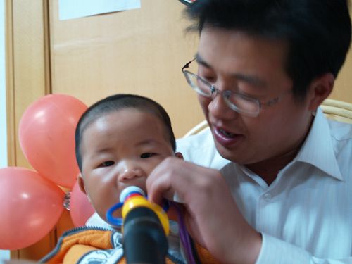 节日里,校工会精心组织的“迎奥运庆六一”活动于5月30日18:30在教工活动室举行。“六·一”是孩子们的节日,而“六·一”的快乐却是属于每一个人。傍晚,小朋友们在爸爸妈妈的陪伴下,欢天喜地地来到早已为他们精心布置的“小乐园”,等候着的大哥哥和大姐姐们为小朋友们一个个佩戴“中国心”。活动中,小朋友们的热情异常的高涨:奥运知识了如指掌;才艺展示各显神通,有弹电子琴的、吹口风琴的、讲故事的;智力游戏积极参与;当天恰好是原素芳老师宝宝的生日,小家伙也特别配合,似乎明白他就是今天的“小寿星”,手舞足蹈还吹起了小喇叭。现场的大小朋友齐唱“祝你生日快乐……”,许心愿吹蜡烛吃蛋糕,为他庆祝一岁生日,可谓乐上加乐;还有祝福寄语温暖父母……节目丰富多彩。有的小朋友甚至按捺不住,一个劲地往主持人身旁涌,生怕自己错失了表现的机会,表演一个接一个,络绎不绝。欢声、笑声汇成一片,整个教工活动中心成了欢乐的海洋。