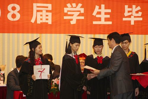 接着,颜炼钢副院长在典礼上宣读了2008届省级、校级优秀毕业生名单;党委书记楼玉琦为2008届优秀毕业生颁发了荣誉证书。