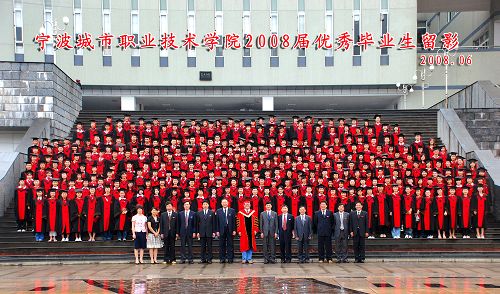 图三、宁波城市学院2008届全体专科优秀毕业生着副学士服留影