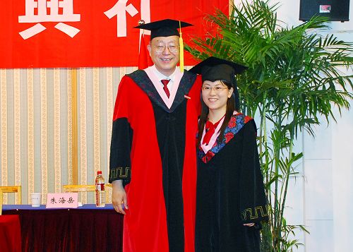 图二、钱理文副院长着导师服给2008届本科毕业生拨穗