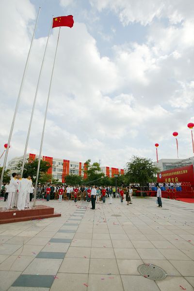 庆典大会在庄严的升国旗仪式中拉开了序幕。随后楼书记宣读了宁波市人民政府副市长成岳冲祝贺我院五周年校庆的贺信。