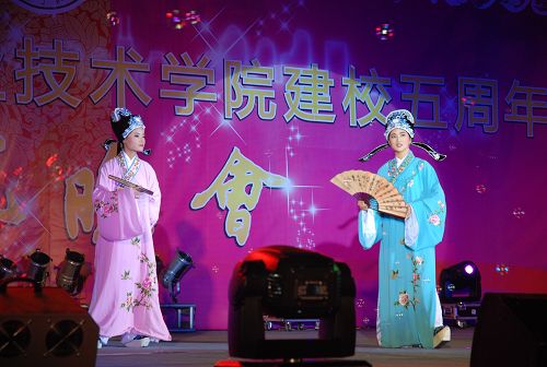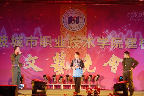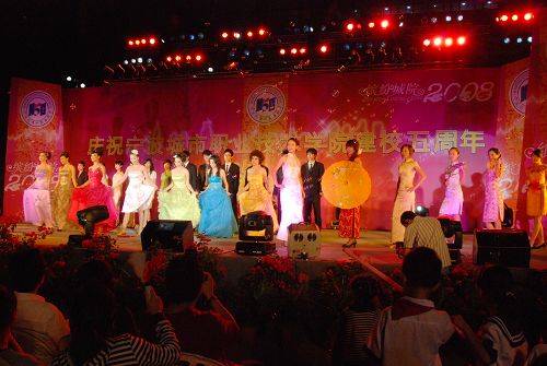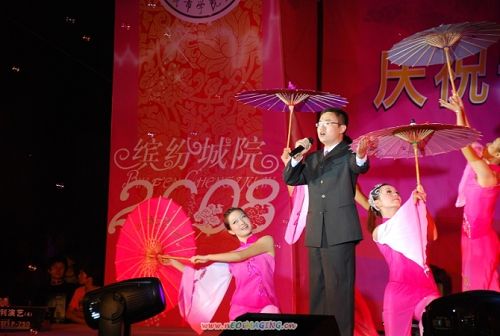晚会伴随着极富喜庆气氛的舞蹈《好日子》拉开了帷幕,用欢快喜庆的旋律、热情奔放的舞姿传达了浓浓的真情,送来了深深的祝愿。紧接着,唐艾琳、刘立荣老师的男女二重唱《节日欢歌》在这流光溢彩的美丽夜晚,唱出了大家心中的喜悦,赢得了现场阵阵热烈的掌声。梦想是辉煌的化幻,理想是成功的彼岸,遐想是浪漫的鼓点,畅想是未来的咏叹,配乐诗朗诵《城市畅想》荡气回肠,让每一个城院人的内心为之振奋;灿烂的鲜花表达深情的礼赞,律动的舞步跳出蓬勃的生机,健美操《魅力时刻》传递给每位观众是火一般的青春活力、水一样的清纯魅力;抗震救灾的壮举,让我们更加了解了四川,一首康定情歌,让我们感知了独特的风俗,明了优美的《溜溜的康定,溜溜的情》;动听的越剧联唱《越剧满园》也让晚会现场气氛高涨,观众的欢呼喝彩声不绝如缕;健康与美丽从来就是青春的注解,智慧与勇敢历来都是英雄的本色。现代京剧《智斗》让我们共同感受这份沉着和机智;《中华武棍》充满阳刚锐气的武术表演,展现了当代大学生的铮铮骨气;《Hit-Hop Dance》展现潇洒的率性,刻划青春的灵动,令人耳目一新的街舞。腾挪似闪电、跳跃如飞龙,酷酷的表情、帅帅的装束是活力的洋溢、是生机的亮相;《神秘面纱》一切皆因青春美少女脸上的面纱而就得朦胧、显得神秘。柔美的音乐、甜美的唱腔、如风的碎步、如烟的水袖展示无限韵味、无尽魅力;服装秀《秋日漫步》演绎着一场场色彩与旋律的舞台剧;《想家的时候》让我们和着舒畅的旋律陶醉在想家的甜蜜中;《今夜无眠》使每位在场观众欣喜缠绵心头,激动在脑海翻卷,兴奋占据困倦的地盘。歌曲《明天会更好》表达了对母校亲切的祝贺与问候,同时也给整台晚会添上了圆满的句号。