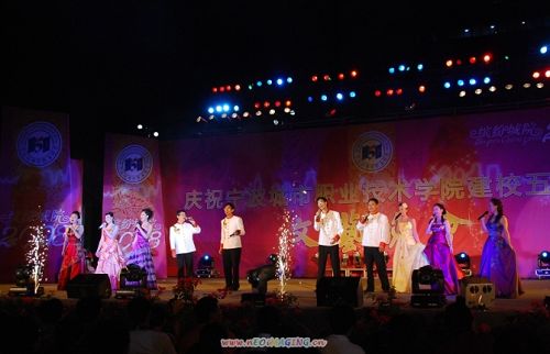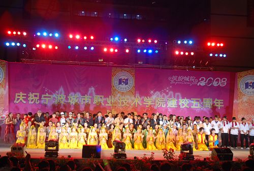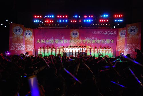 9月27日晚是一个令所有城院人难忘的夜晚,学院广场前万人聚集,群情振奋。装饰华美的舞台上,浪花欢腾,迎风的帆正等待起航。7点整礼花呼啸着划破夜空,如星光点缀苍穹,映衬每一张绽放的笑颜,宁波城市学院建校五周年校庆文艺晚会·缤纷城院在万众期待中拉开帷幕。台湾兄弟院校及各界嘉宾、各级领导、一百多位从外地赶来的校友与在校师生一同挥舞着荧光棒,享受这一场视听盛宴,共同见证城市学院发展的历程与辉煌。
