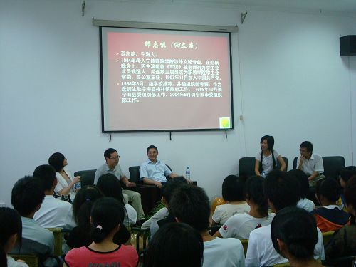 受邀校友93级文专班的许勤俭、94级文本班的邵志能、95级文本班的张强,现在分别是外资企业的高管、政府机关的干部和企业负责人。访谈会上,他们各自讲述了大学经历,同时还向在座的学生干部提了许多宝贵的建议和意见。访谈现场,台上的嘉宾侃侃而谈,台下的听众们静静聆听,并不时为精彩之处献出雷鸣般的掌声。校友们还就同学们关心的问题做了细致的解答。