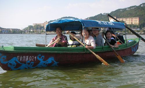 上午,参加秋游的全体教职工及其家属来到了当日行程的第一站“福泉山”。一路驰车而上,山路蜿蜒盘旋,清凉的空气中夹杂着浓郁的草木幽香,沁人心脾;绿意漫山的茶园,错落有致,虽已过采茶的黄金时节,无法亲眼目睹游者和茶农如火如荼采茶忙的场面,倒也给了游者一份心灵上的宁静。站在山顶俯瞰,万物尽收眼底,不禁感叹自然的神奇。下午,全院教职工在东钱湖上划船、戏水、谈笑,湖面的空旷给了游者别样的心绪。