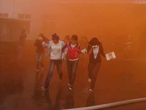 逃生演习中,整个撤离过程组织有序、分工明确、紧张而不慌乱,“遇险”学生在最短时间内疏散到安全地带;之后,还进行了现场灭火演习,消防队员对大家讲解了灭火器的正确使用和注意事项,并亲身指导学生使用干粉灭火器,对大火进行灭火演练。