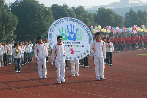 商务学院、信息学院等各学院的代表方阵依次走过主席台,各学院风貌尽情显现。环境学院高举奥运火炬进场,象征着运动会和谐、合作,友谊和团结的精神。奥运五环作为体育运动的标志性符号,出现在信息学院和国交学院的方阵中。成教学院的放飞的和平鸽,载着所有运动员的梦想与理念:将运动进行到底;友谊第一,比赛第二。各学院代表方阵整齐的步伐,响亮的口号,体现出城院学子自尊、自爱、自信和自强的精神风貌,寄寓着城院学子对运动会的希望与祝愿。