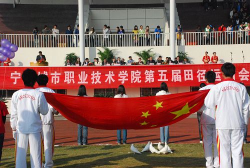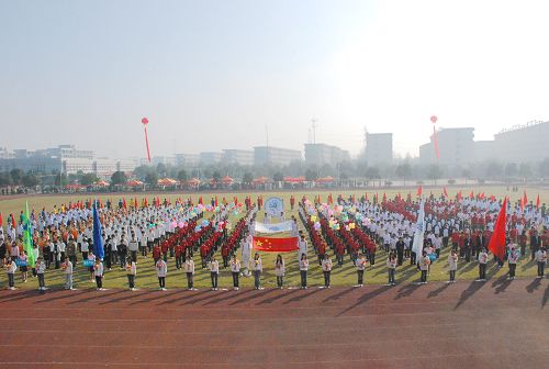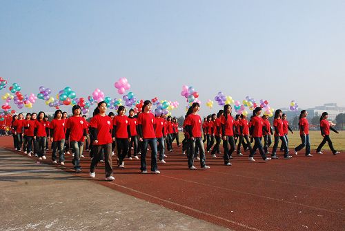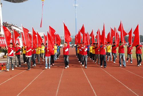 开幕式上,首先入场的是国旗队,他们迈着铿锵有力的步伐经过主席台,飒爽的英姿展现了国旗的庄严,紧接着入场的是校旗队和校徽队。艳丽夺目的鲜花队将整个赛场装扮的艳丽四射,展现出无限的活力。鲜花方阵过后,运动场上出现了近百只五彩的气球,为绚丽的赛场增添了活力。一面面彩旗在迎风招展,坚毅的步伐和不屈的精神向众人展示了他们的朝气与自信。