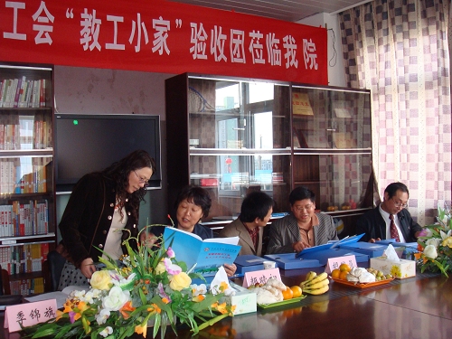 评估检查专家组由市教育工会副主席胡国员、万里学院工会主席石美琦、医药高专工会主席徐应昌、纺织服装学院工会主席胡玉珍等四人组成。校工会办公室相关人员,管理学院领导、分工会主席及委员、各系主任、教师代表以及兄弟学院分工会主席等30余人参加会议,会议由校党委委员、工会副主席季锦旗主持。