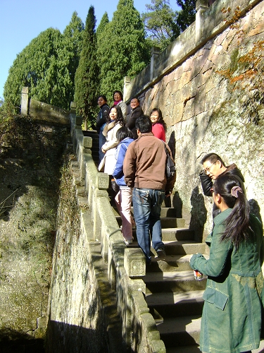 国清寺位于天台北3公里有一座古朴的寺院,始建于隋代,取自“寺若成,国即清”。古朴的国清寺没有杭州灵隐寺的喧嚣,没有普陀法雨寺的商业气息,正是现代都市人向往的幽静之处。进得古刹门,甬道两旁浓荫蔽日,修竹夹道,平添了深幽神秘的气氛。虽然我们一行人进寺的想法各不相同,但无不对甬道旁形状不规则的石头所砌成墙壁赞叹不已,这些石头都是采用无缝连接,不由得不惊叹前人精湛的工艺和聪明才智。