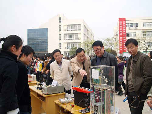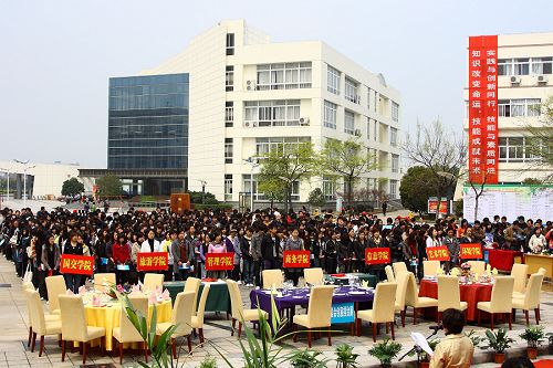 启动仪式现场,各二级学院组织了专业技能项目的现场展示,商务学院的“丝恋江南”外贸商品展,信息学院的计算机拆装机技能和电子作品展,管理学院档案整理展,旅游学院的中西餐宴会创意摆台展,国交学院的“singing in the sky”英语歌曲连唱,环境学院的插花技能展,艺术学院徒手海报制作展、现场绘画展、家具作品展。学院各领导、老师和同学们参观了各项目的展示。