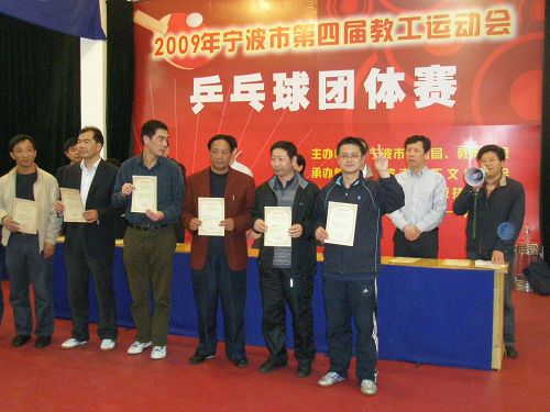 4月24日——26日,市第四届教工运动会首个比赛项目——乒乓球团体赛如期举行。我院乒乓球协会积极组队参加。经过激烈的小组赛、残酷的淘汰赛,我院乒乓球队团结协作,表现突出。最终,由王海翔、章建越、张新德、沈海东、周传蛟、蔡贤庆等六位老师组成的男队取得了团体第六名的好成绩。