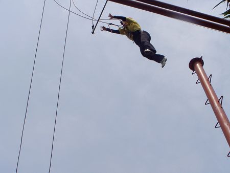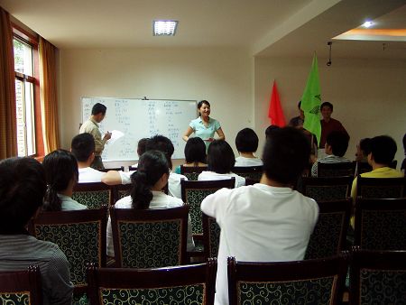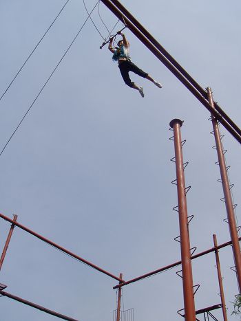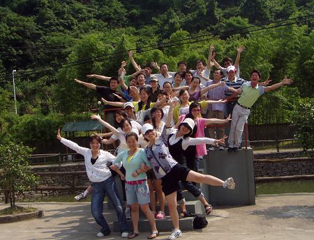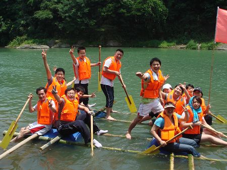 五月的樟溪,流水潺潺;巍峨的四明山,尽显葱翠。座落在樟溪水畔的脉动山庄是宁波市较早开展拓展培训项目的重要基地之一。27日下午,我校40多名青年教师一到驻地,就投入了紧张的拓展培训之中,分别组建了“前进队”和“天天向上队”,进行为期一天半的拓展训练活动。通过体验空中单杠、赛龙舟等系列拓展训练,使青年教师们建立了团队的合作意识,学会了合理的运用资源和沟通技巧,也进一步激发青年教师的爱国主义和集体主义精神。