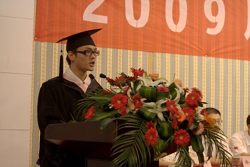 优秀毕业生代表05英本班陈金松同学代表全体毕业生对四年来培养、关心与帮助他们的学院领导